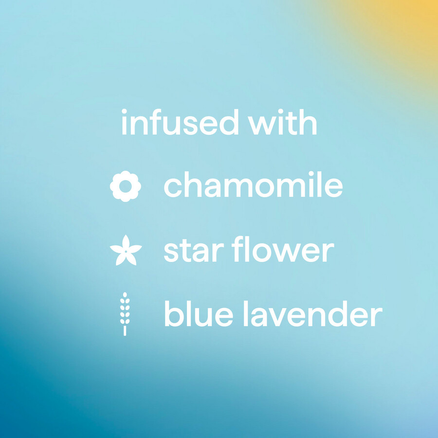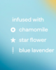 - Infused with chamomile, starflower + blue lavender.