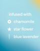 - infused with chamomile, starflower + blue lavender.