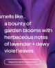 lavender + violet is a fresh, floral fragrance with notes of lavender and dewy violet leaves. smells like a bounty of garden bloooms.
