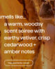 vetiver + amber is a luxurious and sultry combination of amber, vetiver, and cedarwood notes. smells like a warm and woodsy scent soiree.
